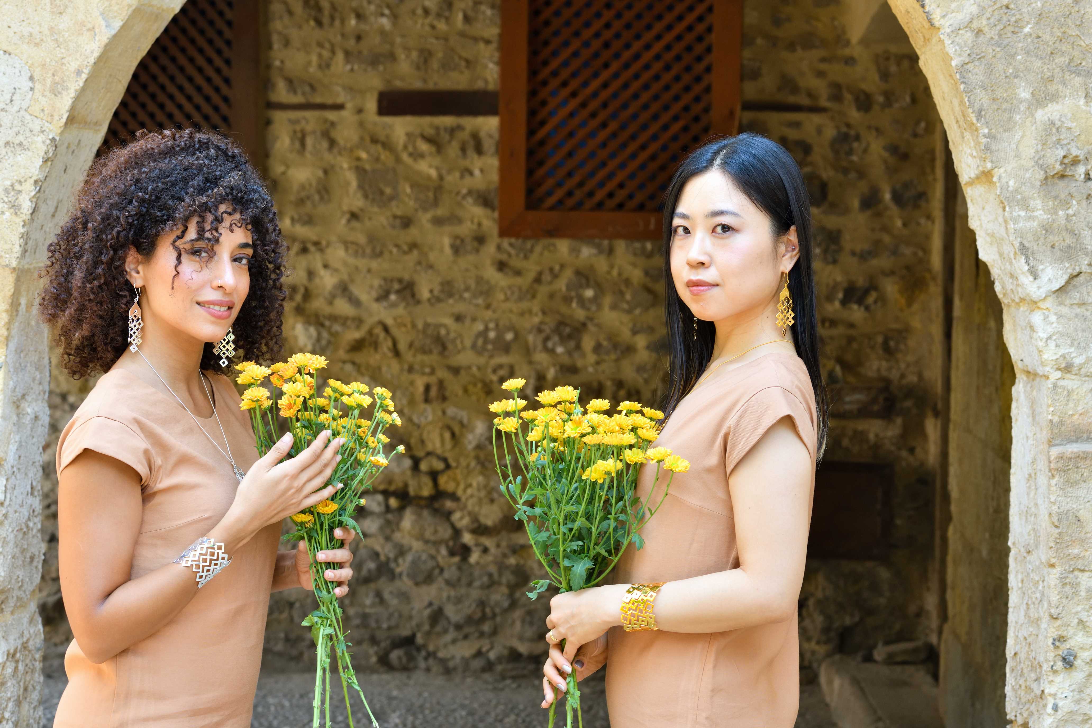 Gold and Silver -plated brass, hand-cut with a